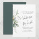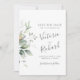 Beautiful Save the date card featuring watercolor eucalyptus and gold leaves.