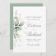 Beautiful Save the date card featuring watercolor eucalyptus and gold leaves.