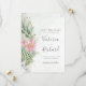 Beautiful Save the date cards featuring pink floral watercolor eucalyptus and gold leaves.