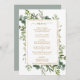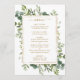 This dinner menu features painted watercolor eucalyptus greenery, green leaves with a gold rectangular frame. For more advanced customisation of this design, Please click the "Customise further" link. Matching items are also available.