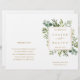 This wedding ceremony program features painted watercolor eucalyptus greenery, green leaves and a gold square frame. For more advanced customisation of this design, Please click the "Customise further" link. Matching items are also available. NOTE: You will need to fold them in half when they arrive.