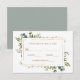 This wedding RSVP card features painted watercolor eucalyptus greenery, green leaves and a gold rectangular frame. For more advanced customisation of this design, Please click the "Customise further" link. Matching items are also available