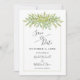 Elegant watercolor fresh green botanical foliage frames your wedding Save the Date Cards. Personalise with your upcoming wedding information in chic slate grey lettering. A modern yet simple choice for any season wedding. MATCHING wedding invitations and coordinating pieces available to complete your wedding suite. Change the colours of the border, behind the foliage and on the back.