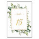 Botanical Green Wedding Gold Glitter Number 15, Table Number