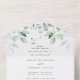 All in One Wedding invitation featuring elegant watercolor greenery and eucalyptus leaves. Each card includes a perforated RSVP card that’s addressed and ready for your guests to send back in the mail. Customise with your information or click "click to customise further" to change the font style, size, colour or background colour.