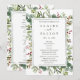 This wedding program features painted watercolor eucalyptus, green leaves, red berries, pine branches with a green rectangle frame. For more advanced customisation of this design, please click the "Customise further" link. Matching items are also available.
