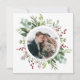 This Christmas | Holiday save the date flat card features painted watercolor eucalyptus, green leaves, red berries, pine branches with a circle photo and custom text on the back. For more advanced customisation of this design, please click the "customise further" link. Matching items are also available.