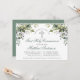 Modern Elegant First Holy Communion Invitation includes watercolor eucalyptus leaves and other beautiful botanical greenery foliage. Sage Green Back. Silver Cross.