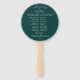 Beautiful watercolor botanical island wreath in shades of pink, peach, coral and green, back features solid deep ocean teal background, wedding program fans. Personalise text, customise font style, colour and size.