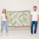 Botanical Leaf Pattern Throw Blanket – Soft Green & Beige Nature-Inspired Woven Blanket
