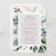 Wedding invitation featuring elegant greenery and botanical leaves. Customise with your information or click "click to customise further" to change the font style, size, colour or background colour.