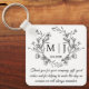 botanical monogram thank you wedding key ring