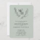 Botanical Monogram Wreath QR Code Sage Wedding Inv Invitation