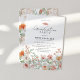Elegant floral graduation party invitation. Design features a classic white background decorated with pink and peach watercolor flowers and botanical greenery, a cute little motarboard and graduation party template that is easy to customise with your own event details.