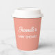 Refresh your guests with these delightful sweet peach baby shower paper cups. The design features lush watercolor peaches and spring blossoms winding around a soft coral background. These are the perfect tabletop addition for a southern-inspired garden party or orchard-themed celebration.