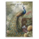 vintage botanical painting of a peacock standing on stairs in an English garden surrounded by pastel flowers