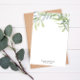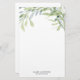 Stationery paper featuring light green and teal gentle watercolor foliage paired with