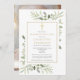 An elegant botanical personalised watercolor greenery leaves photo celebration of life remembrance invitation. Designed by Thisisnotme©