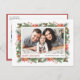 Spread festive cheer with our customizable photo holiday postcard featuring watercolor pine needles, poinsettia, winterberry and pine cones. This vintage design blends the beauty of hand-painted watercolor elements like pine branches, pinecones, vibrant poinsettias, and winterberries to frame your special holiday photo. This watercolor holiday postcard is perfect for families, friends, or anyone looking to send a warm, personalized holiday greeting with a touch of nature-inspired elegance.