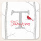 Botanical Red Cardinal Winter Tree Monogram Square Paper Coaster