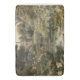 vintage painting of a botanical scene of swans swimming in the water in an English garden with water lilies, bridges and many exotic flowers