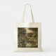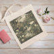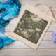 vintage painting of a botanical scene of swans swimming in the water in an English garden with water lilies, bridges and many exotic flowers