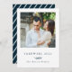 Simple and elegant farewell 2022 photo card, features a lovely watercolor winter botanical and classic blue and white stripes.