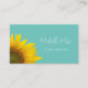 Whimsical sunflower QR code business card, with a yellow country floral image on a teal green background. With typography lettering, you can customise with your own name or title. The back of the card has a white background and black customisable lettering. A modern professional way to get the word out about your business.