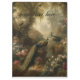 vintage botanical painting of three peacocks in an English garden surrounded by pastel flowers