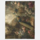 vintage botanical painting of three peacocks in an English garden surrounded by pastel flowers