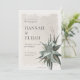 These vintage 5" x 7" wedding invitations feature a succulent bouquet with dried flower accents on a weathered texture background. Placeholders begin with, "Please join us for the marriage of," the wedding couple names, date and time, venue with address and, "reception to follow."