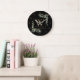Botanical Watercolor Greenery Monogram Black Gold Large Clock