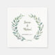 Botanical watercolor olive leaves, bride and groom, Wedding paper napkins.