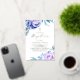 Invite guests with this floral gold foil pressed baptism invitation. It features watercolor illustrations of violet flowers and greenery. This purple floral invitation is perfect for spring and floral theme baptisms. Personalise botanical baptism invitation by adding your own details. This gold foil christening invitation is available in other foil colours.