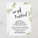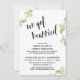 Here's a fresh choice for your post-wedding celebration needs. Over an editable white background, I've placed a typography graphic that reads "we got married", featuring an elegant, modern script font in black. Surrounding this header and the body text are 3 separate green watercolor botanical sprays that dance and curve around the borders. Those same graphics were placed on the back in enlarged format. Use the template fields to add your own details and click to customise further if you'd like to make any additional modifications. All layers are unlocked to allow for all the positioning and sizing control you desire.