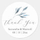 These botanical wedding stickers feature the words "Thank You" set in trendy script typography. Use the template fields to add your custom names and wedding date. A sprig of watercolor dusty blue botanicals adorns the top. To see matching rustic wedding favour ideas visit www.zazzle.com/dotellabelle
