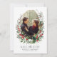 Featuring a delicate gold geometric frame encircling a lush watercolor wreath adorned with vibrant red berries, and greenery, this design combines seasonal charm with timeless elegance, making it ideal for Christmas themed weddings.