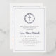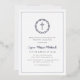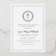 A modern botanical wreath foil cross design boy first communion invitation card. The colours and text can be personalised.