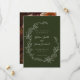 A fine art wedding save the date invitation with a delicate botanical wreath illustration, elegant font mix of a calligraphy script font and a serif font for names and wedding details. The back shows a fall flower bouquet in the style of a baroque oil painting with warm colours. The main colour of this elegant fall wedding save the date template is a dark olive green but can be changed in the design tool if you wish.