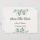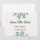 Elegant Save the Date Wedding Card with Beautiful Green Leaves.