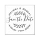 Create a perfect modern touch with this personalised Save the Date rubber stamp with circular lettering and hand-drawn shaded leaves wreath. Please note, you may need to adjust the information you enter by adding or deleting some characters or spaces, to make the text properly aligned.