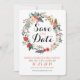 This invitation is stylish and modern with a colourful graphic floral wreath surrounding the words save the date. Personalise with your names, wedding date and other information like the destination or a wedding website. The back has a coordinating spray of flowers to match the front.