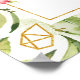 Let your guests know they're at the right party and what's in store for the night. Lush botanicals in green and white with gold crystals, dainty pink flower buds, and undertones of teal blue behind the foliage. Personalise with your own information