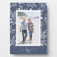 Tabletop plaque with a built-in easel features your favorite photo surrounded with a beautiful border of white foliage, dots and berries on a denim blue background. CHANGE the background color to MATCH your photo. CHANGE the LOVE text to anything - TIP: put your text between the two squares to retain the text swashes. Great as a gift or to display your favorite photo in your own home. Your image colors are put directly on the hardboard panel for a stunningly crisp image with an easy wipe clean surface.