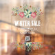 Watercolor poinsettia flowers, pine cones, berries and greenery and the words - WINTER SALE - PLUS your store hours are featured on this window cling. UPLOAD YOUR QR CODE for customers to scan for more info. Choose ANY SIZE and **cling either front (placing inside) or back (placing on the outside) of the window. Size shown is 28" x 40", but can be made larger or smaller.
