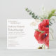Formal Wedding Invitation. Parents Listed. White background. Elegant. Red Floral. Gold text.