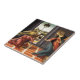Botticelli Annunciation tile. Tempera painting on panel from 1490. Sandro Botticelli was one of the great religious painters of the early renaissance. Annunciation is one of his most moving paintings and features the angel Gabriel announcing the birth of Christ to the Virgin Mary. The angel has golden wings and wears a soft red cloak with gold sleeves and holds a long stem of lilies. A pretty gift for fans of Botticelli, Early Renaissance art, and Christian paintings.