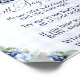My thoughts on this product was excellent. Well printed in a gloss finishing and just the size l ordered. It arrived in good condition and am overall satisfied with the product. The printing turned out great. I was quite surprised with the finishing touch to the poster. The semi gloss was just right and a perfect size to display at the wedding.