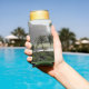 TROPICAL SCENE FEATURING PALM TREES AND A SILVERY OCEAN AT DUSK IS FEATURED ON THIS HANDY AND ATTRACTIVE BOTTLE COOLER.