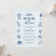 Celebrate your little one with a stylish Bottles & Brunch baby shower invitation that blends preppy charm with playful personality. This blue striped baby shower invitation features hand-drawn doodle illustrations including champagne flutes, baby bottles, strawberries, croissants, coffee, and sweet brunch-inspired details — perfect for a morning or midday celebration.